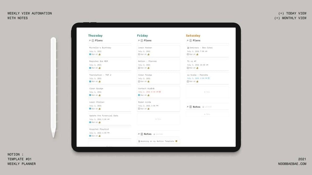 Start simple by replacing your favorite Weekly Planner with this Notion Template.
